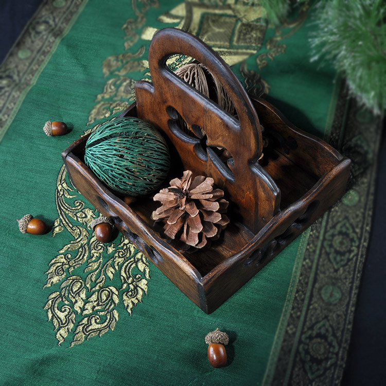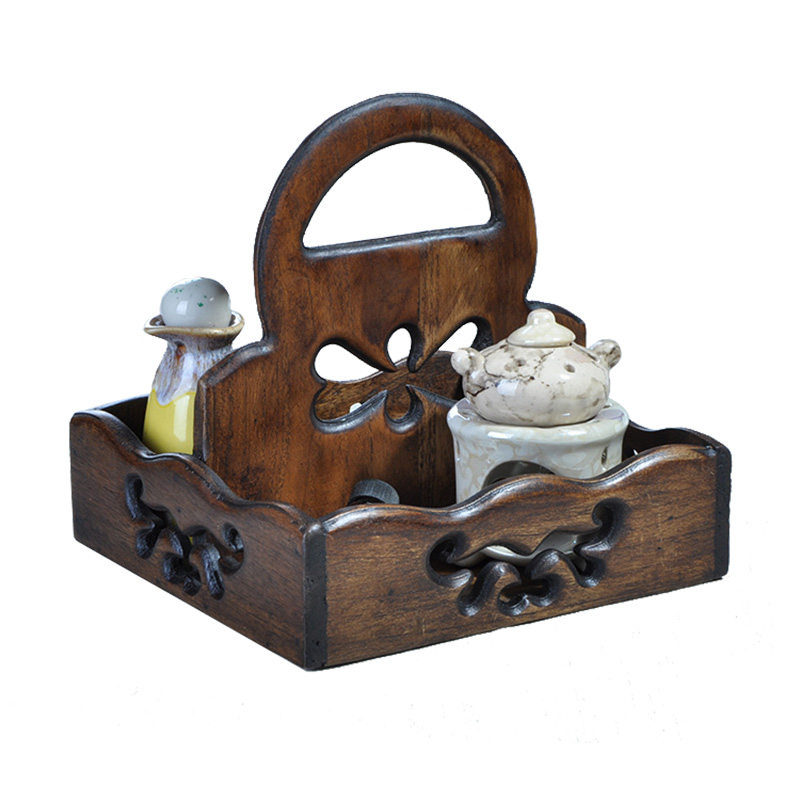 Thai Import Creative Retro Kitchen Shelving Ground Solid Wood Carved Flower Containing shelf Seasonings Rack Corner Racks