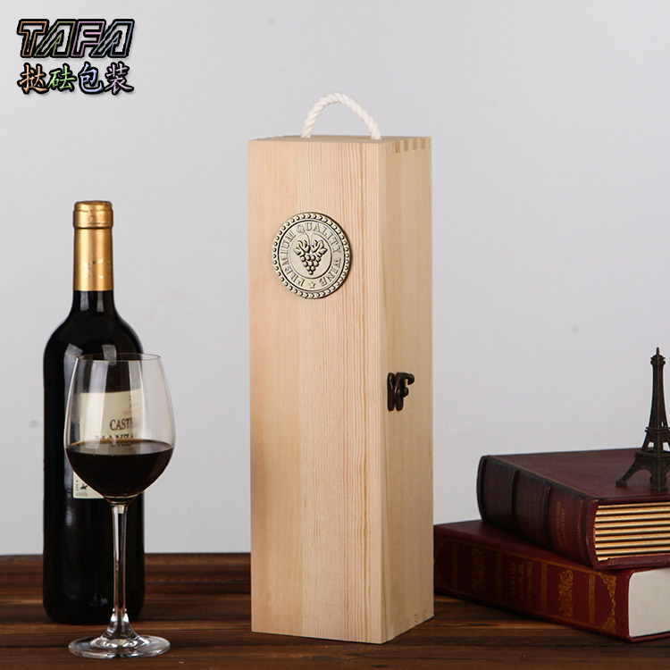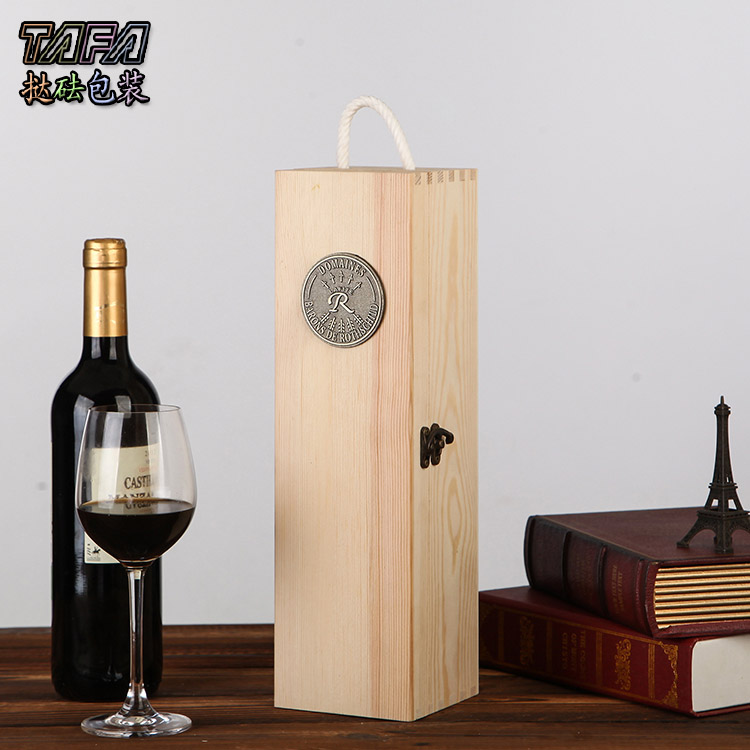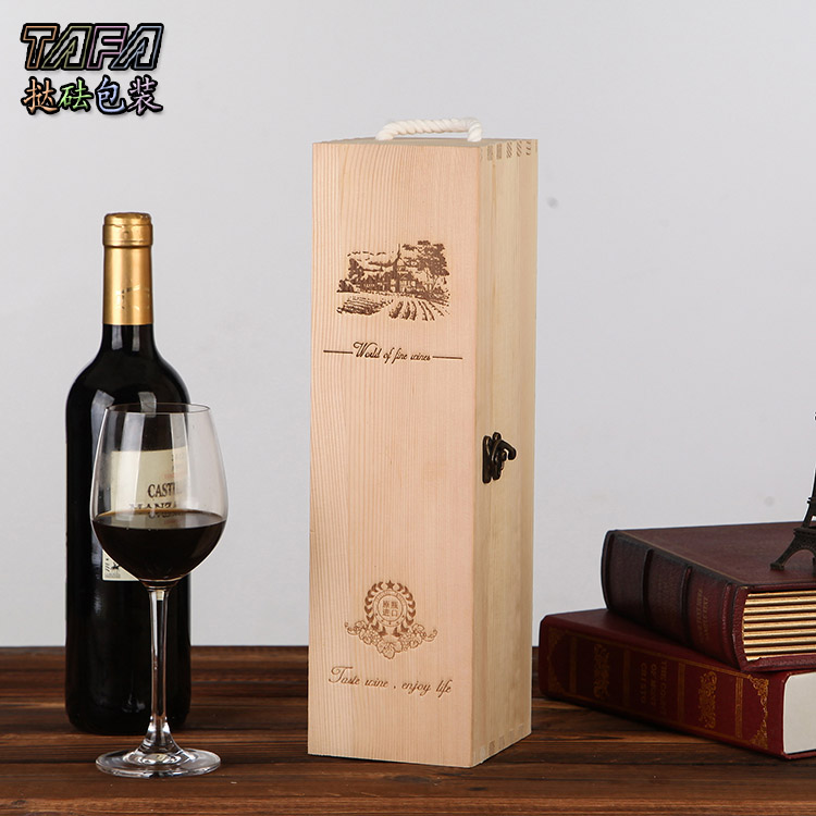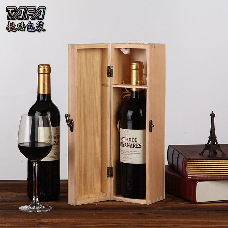 Red wine wooden box single wine box wine gift box wooden red wine packaging box pine wine box
