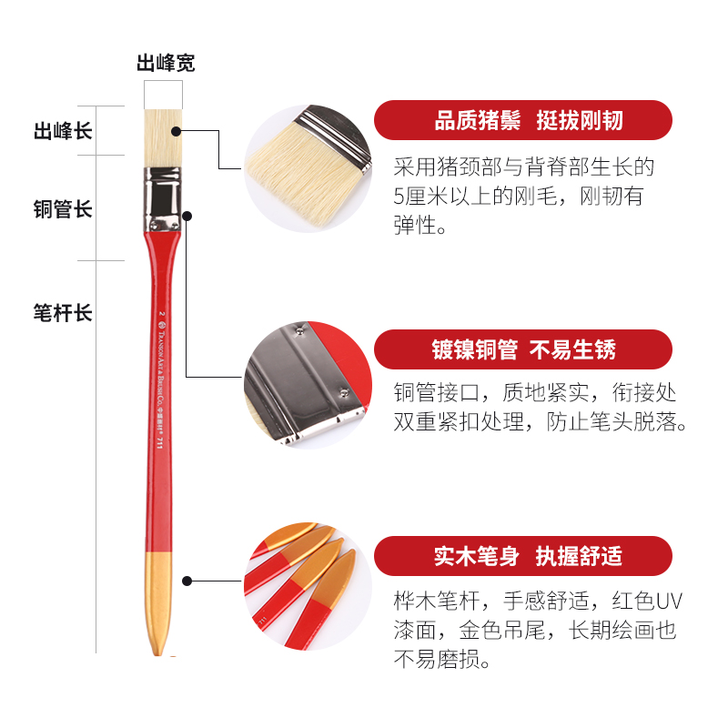 Medium Sheng Drawing Material Pig Mane Long Pole Brush Board Brushed Wall Painted Brush Oil Painting Brush Propylene Water Powder Watercolor Pen