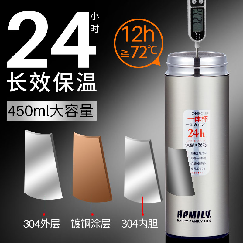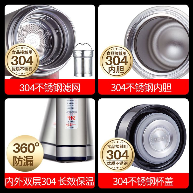 Thermos cup Men's business office cup Bubble tea filter net Food grade 304 stainless steel seamless one-piece water cup