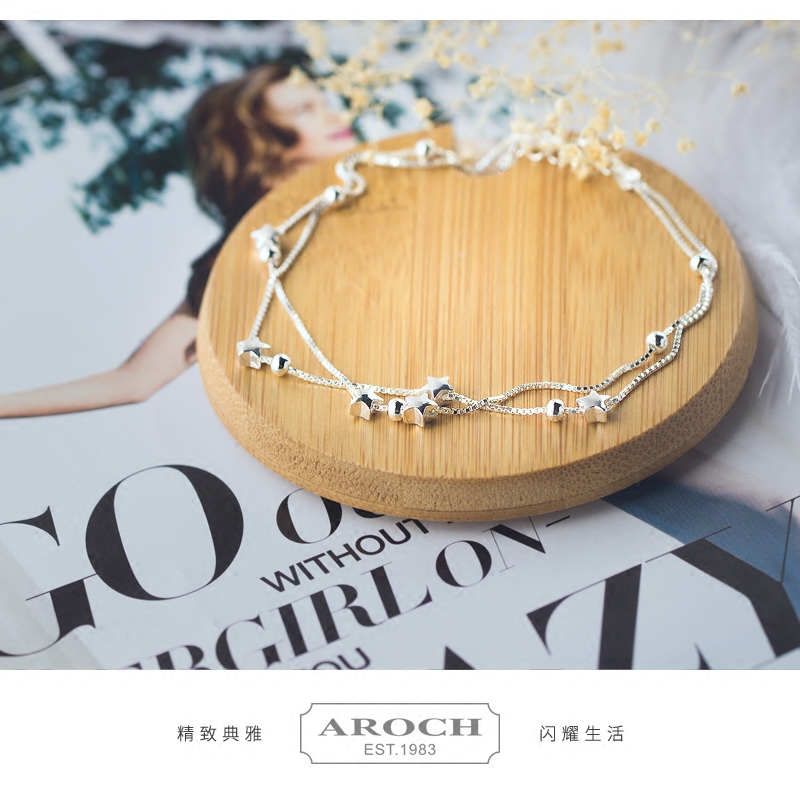 Love Rocky s925 silver double layer star anklet women's fashion Korean version sweet personality temperament fashion five-pointed star jewelry