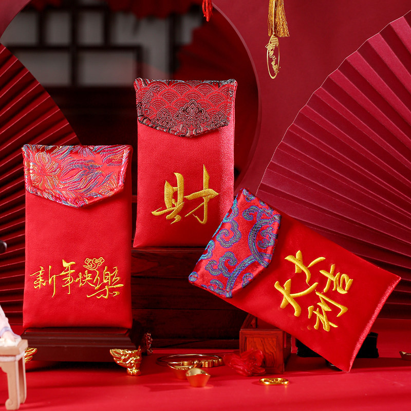 High-grade embroidery New Year red envelope bag Spring Festival New Year fabric creative personality 10,000 yuan New Year's Eve money package is sealed