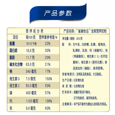 (Double 11 immediately snapped up) Nestlé Yiyun high calcium nutrition adult young lady family nutrition milk powder 320g