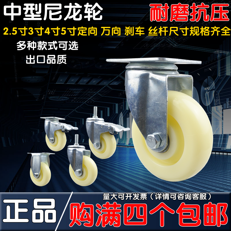 Universal wheel with brake wheel medium 3 inch 4 inch 5 inch nylon wheel cart flat wheel thread 2 5 directional caster wheel