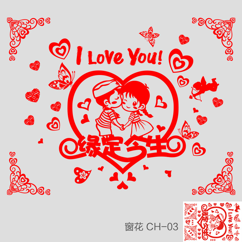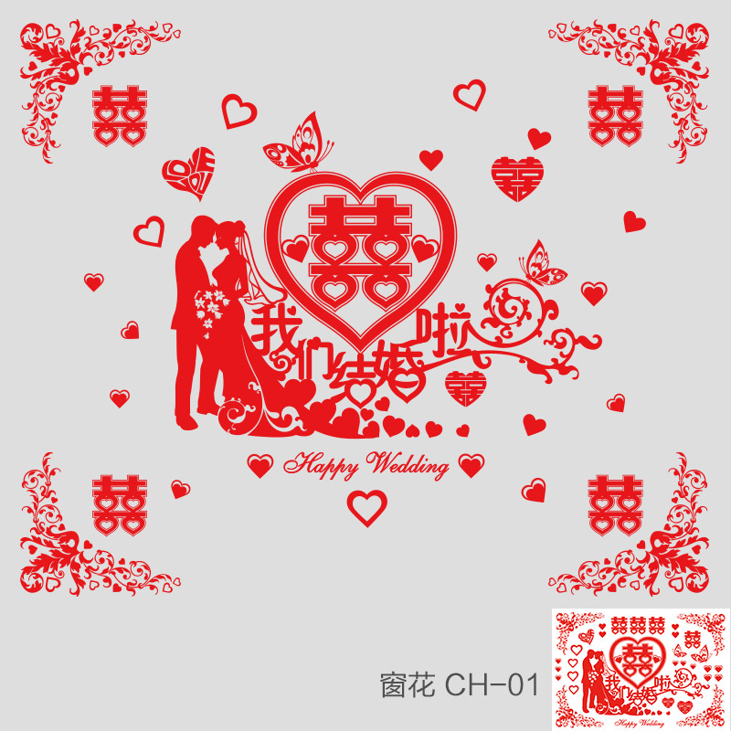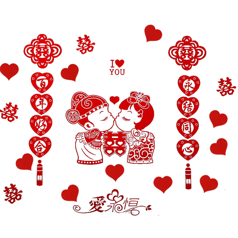 Wedding wedding supplies Daquan Large wedding electrostatic wedding room decoration glass window decoration Hi word sticker Wall sticker