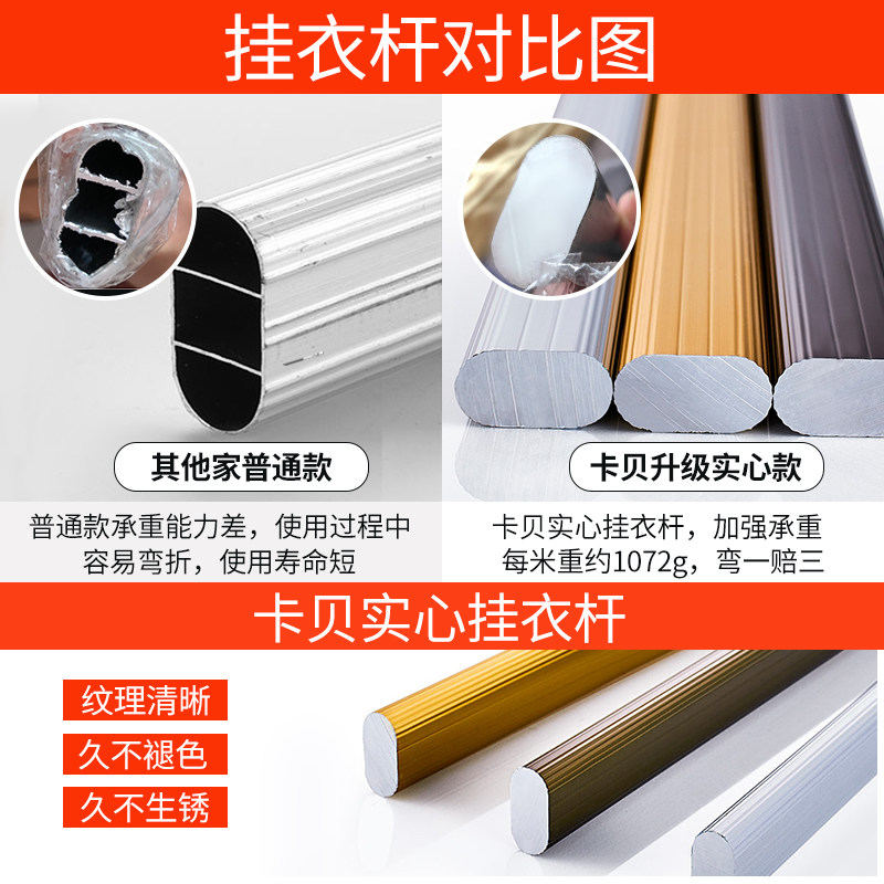 Cabbay Wardrobe Hung Clothes Rod Solid Clothes Whole Cabinet Hanging Rod Aluminum Alloy Thickened Clothes Rod frame flange clothes pass