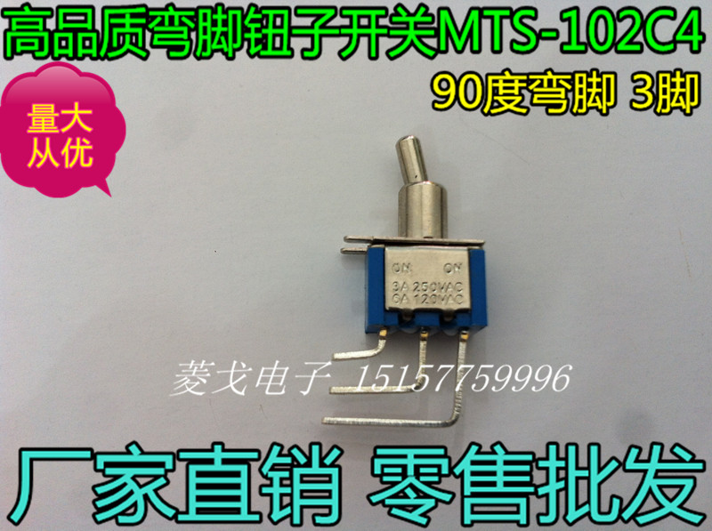 Power switch Rocker rocker switch 90 degree curved foot toggle switch button switch MTS-102C4 6mm3 foot