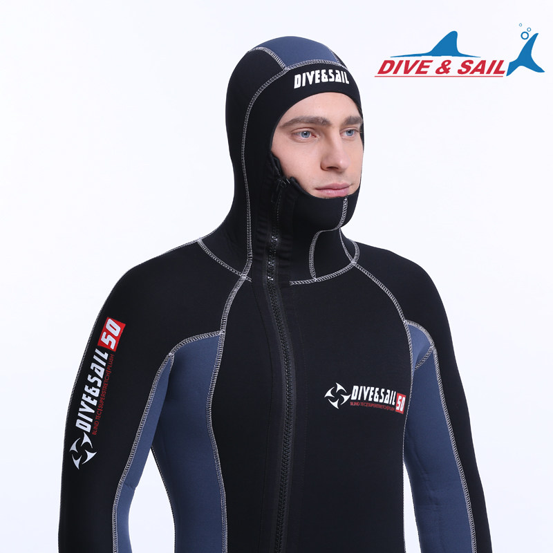 Dev 5mm thickened warm diving suit cold-proof rubber suit 2-piece set two-piece mercerized cloth with diving cap 4133