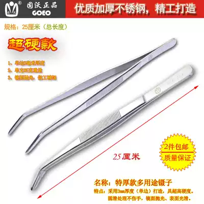 Solid ultra-thick, hard, thick stainless steel tweezers, pinch clips, bent straight head, industrial processing, special use
