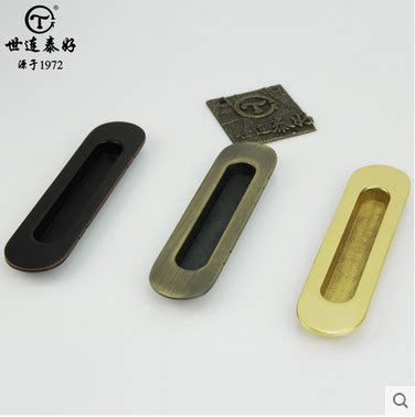 American European-style pure copper mobile door pull hand pull door handle American full copper black concealed handle embedded buttoned hand