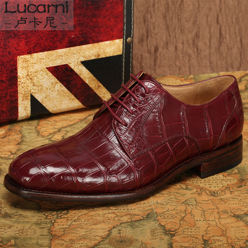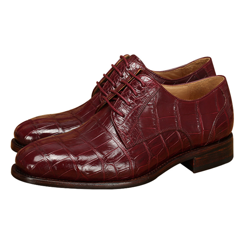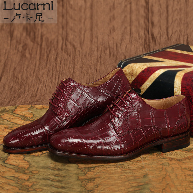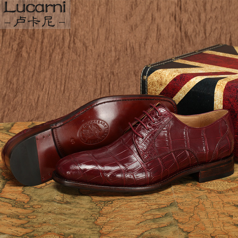 Goodyear men's shoes Bullock crocodile belly men's business formal leather shoes British single shoes custom shoes wine red