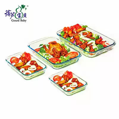 Heat-resistant tempered glass baking tray household kitchen rectangular baked rice fish tray oven transparent glass bowl tableware