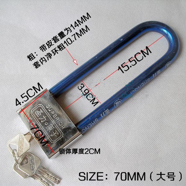 Anti-theft anti-shear double door lock lengthened thick U-shaped waterproof door lock Glass door lock Bicycle lock