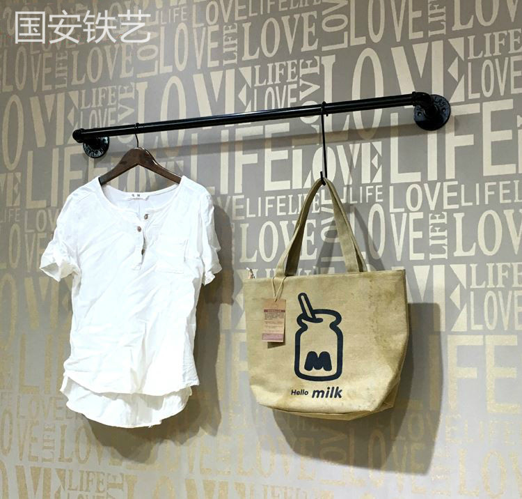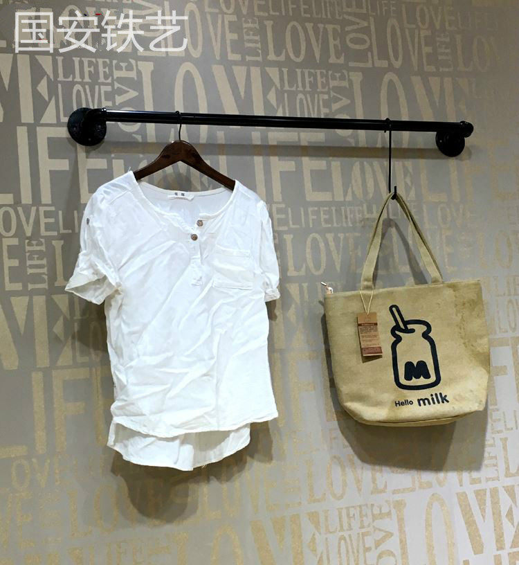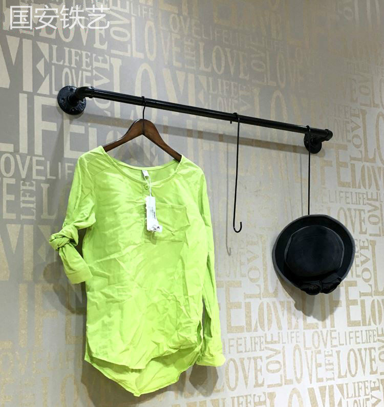 Wrought iron clothing store display rack Lock wall single pole wall hanging water pipe wall hanging hanger hanging shelf clothing shelf