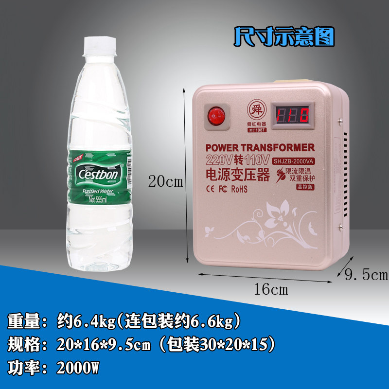 Transformer 220v turn 110v Voltage converter USA Japan 2000w pure copper temperature-controlled foot power Shunred-Taobao