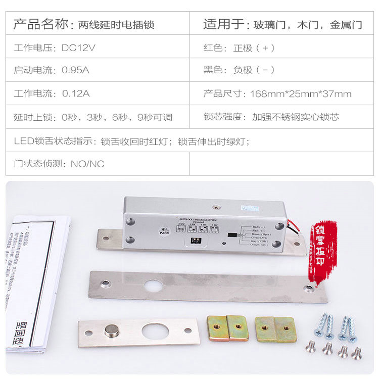 Stainless steel narrow panel small electro - lock 12V door - prohibited lock mini - electromagnetic plug - and - pin lock 168mm long anode lock