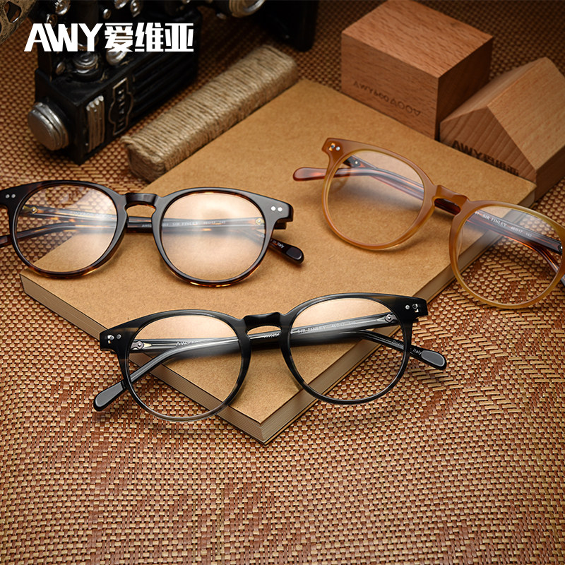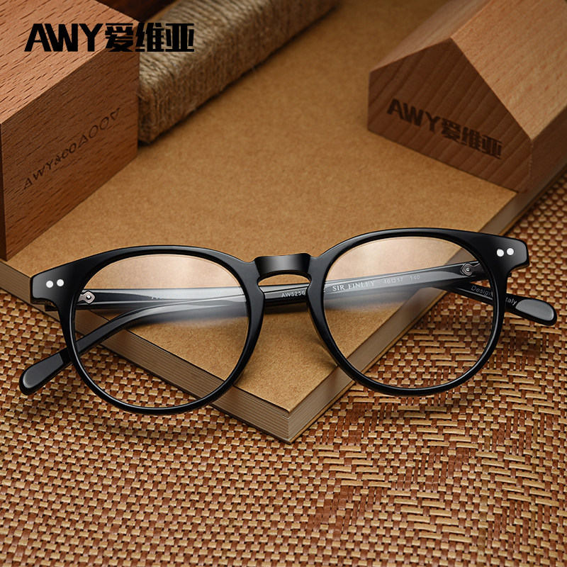 Eyeglass frame male round frame yellow full frame tide beeswax plate retro finished product with myopia yellow frame eye frame glasses female