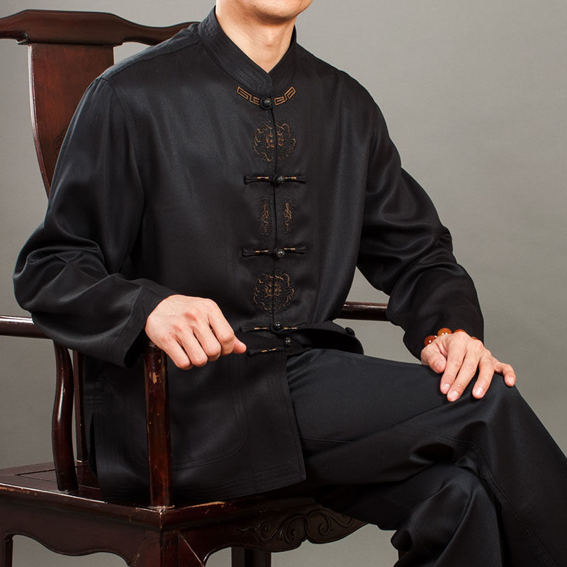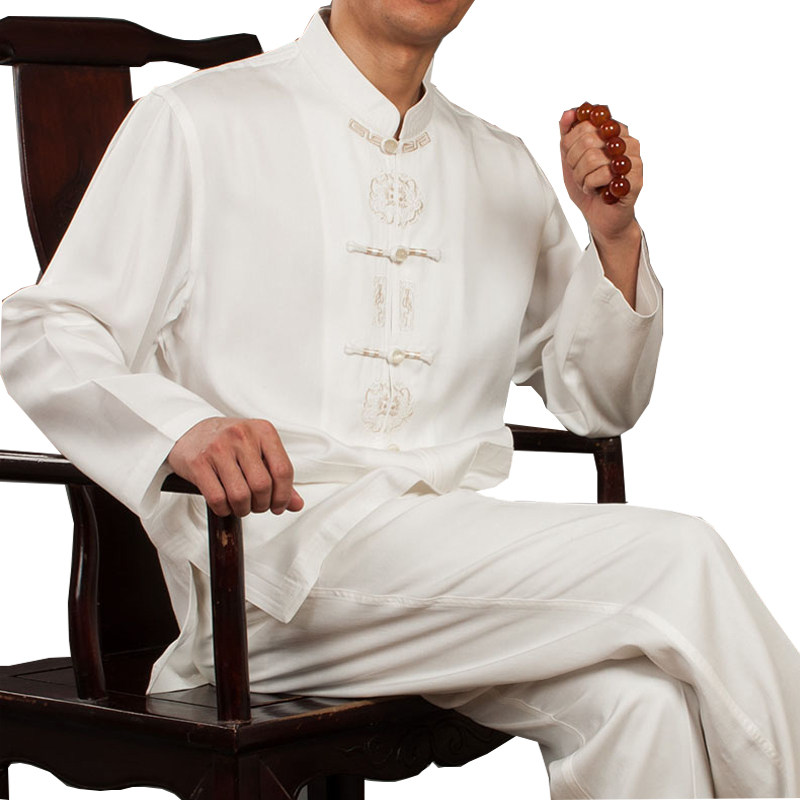100 Foolong upscale men's wear long sleeves shirt white Chinese style collar disc buckle shirt ethnic clothing men