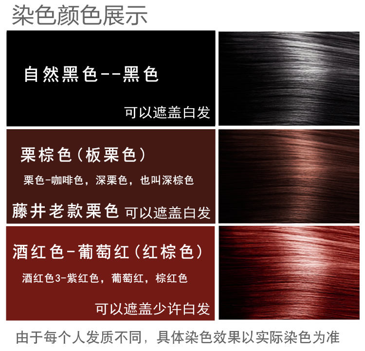 One comb plus two groups (natural black) hair dye one comb plus two groups (chestnut brown) hair dye one comb plus two groups (wine red) hair dye one comb plus two groups (1 black, 1 chestnut brown) one comb plus two groups (