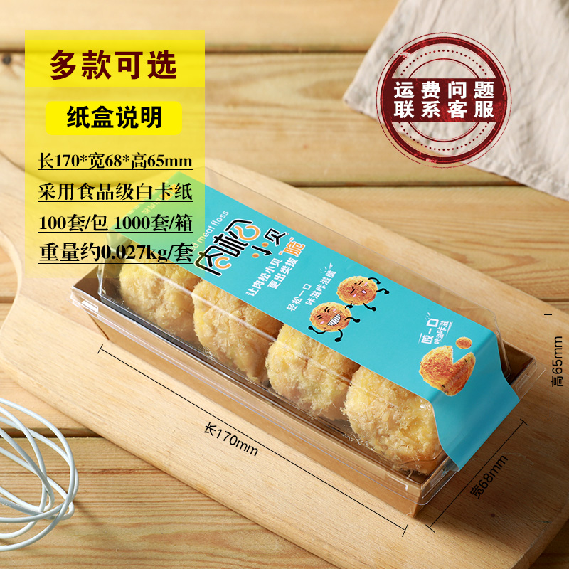 Strawberry crispy floss scallop packing box 6pcs Beibei sandwich paper plastic box High-grade packing box 100 sets