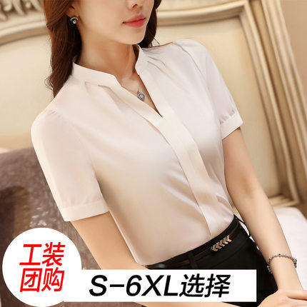 ol white shirt women's large size skirt short sleeve work suit suit tooling Chiffon shirt dress standing collar inch shirt summer