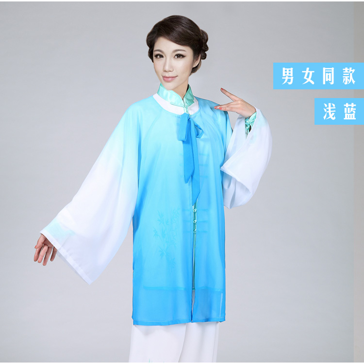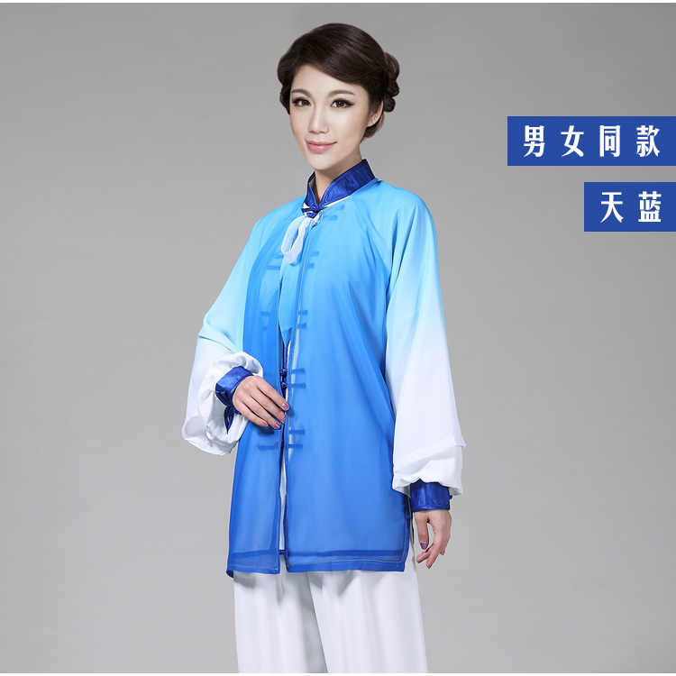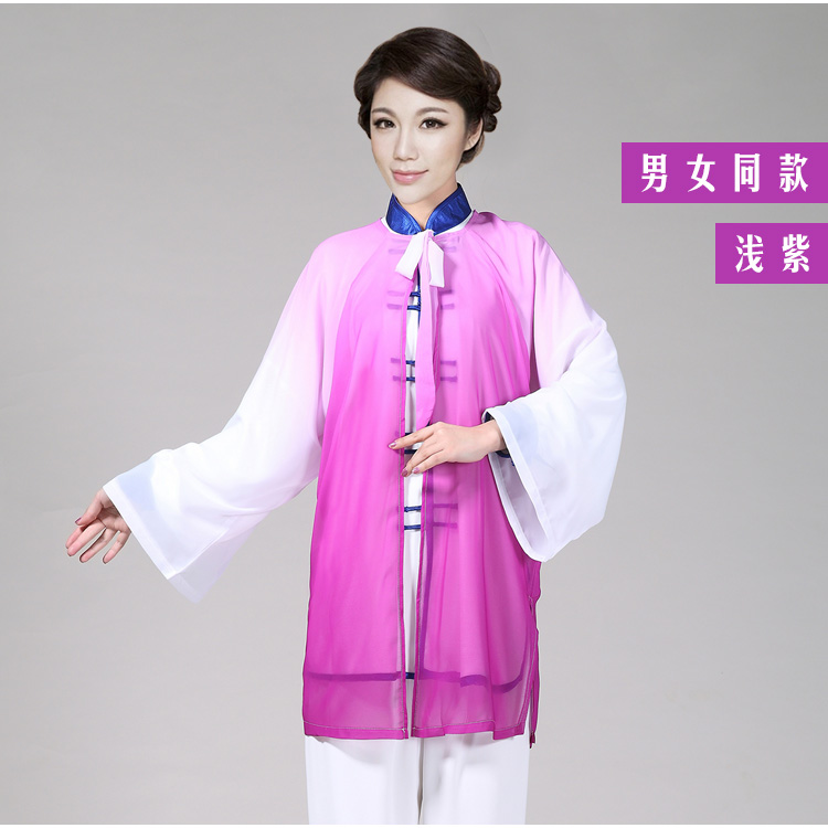 Spring and autumn Tai Chi clothing veil women's chiffon gradient embroidery Tai Chi drape performance clothing summer men's exercise clothing