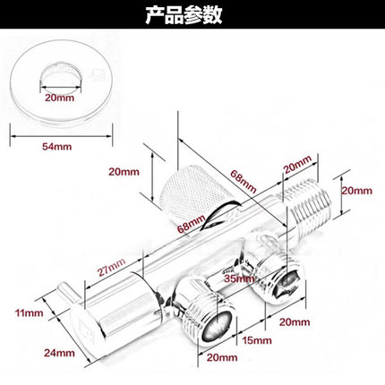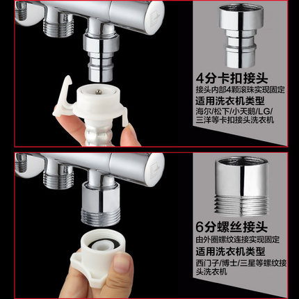 Diving boat angle valve in progress 2-out three-way angle valve full copper double water out toilet washing machine multifunctional angle valve F402