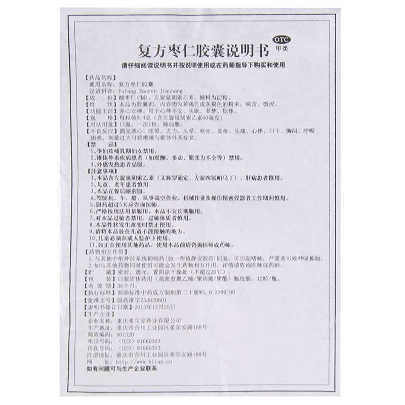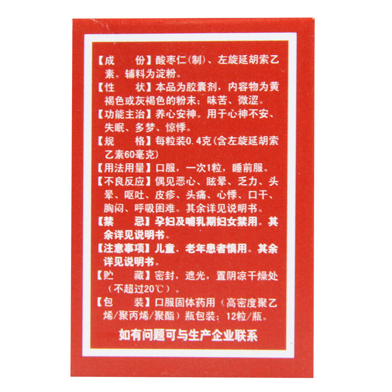 Hilanning compound Zaojen capsule 12 grains of nourishing heart and heart and mind undisturbed and sleepless nights with many dreams