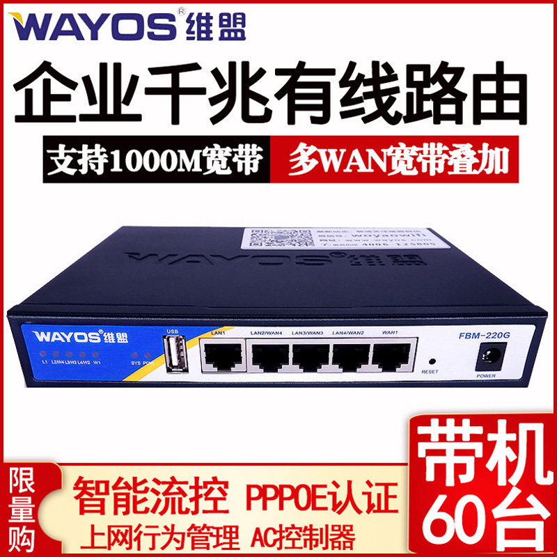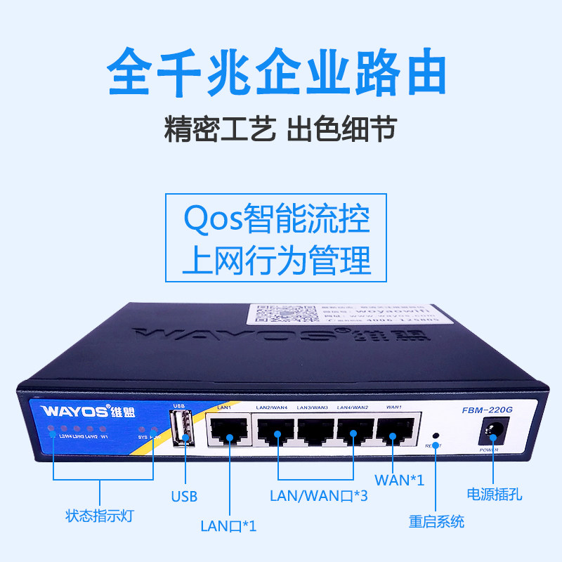 WAYOS Enterprise Gigabit Router Wired Multi-WAN Port Broadband Superimpole Intelligent QOS Flow Control PPPOE Certified Internet Behavior Management Company Internet Cafe Rental House FBM-220G