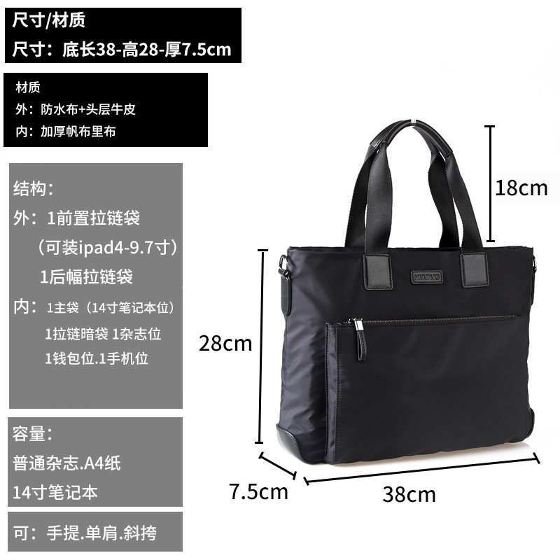 New men's bag horizontal handbag casual men's Korean version messenger canvas Oxford cloth briefcase large capacity