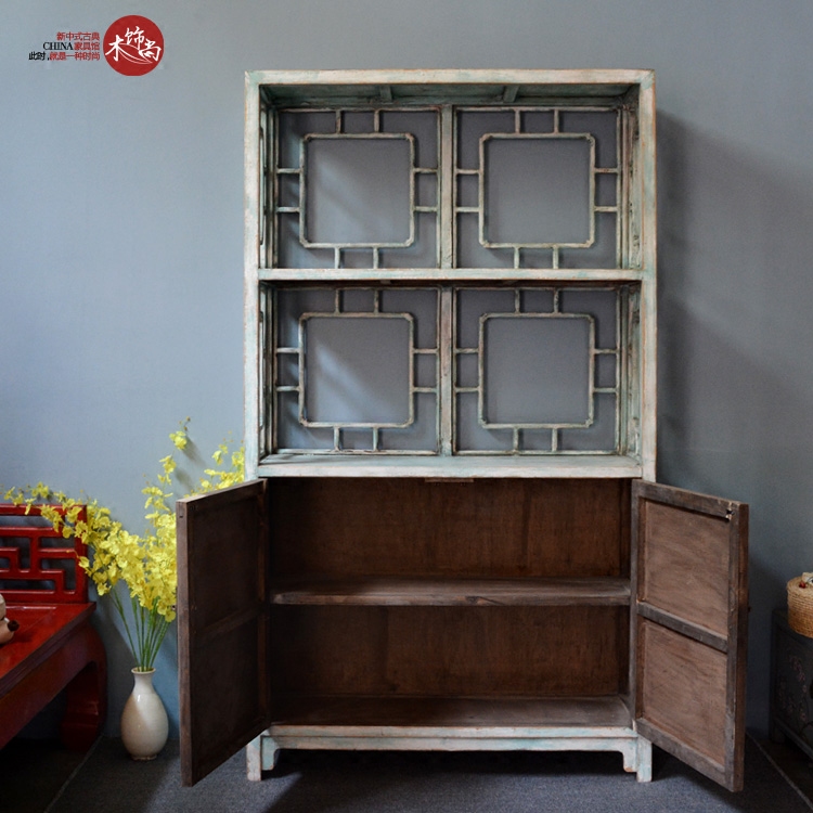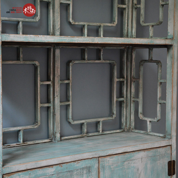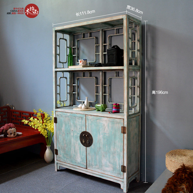 Solid Wood Hollowed-out Engraving Bookcase High Holding Cabinet Cabinets New Chinese Vintage Furniture Show for the Old Mediterranean