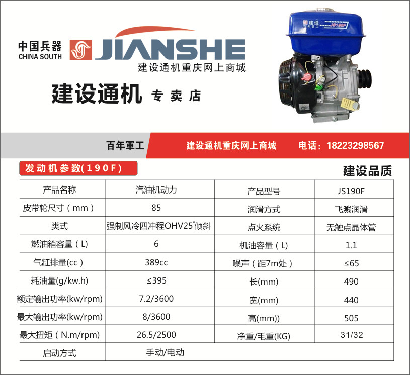 Jianshe 190F manual starting power (flat key) Jianshe 190F electric starting power (flat key)