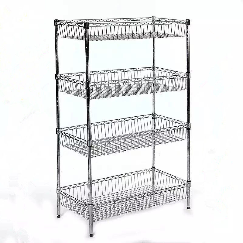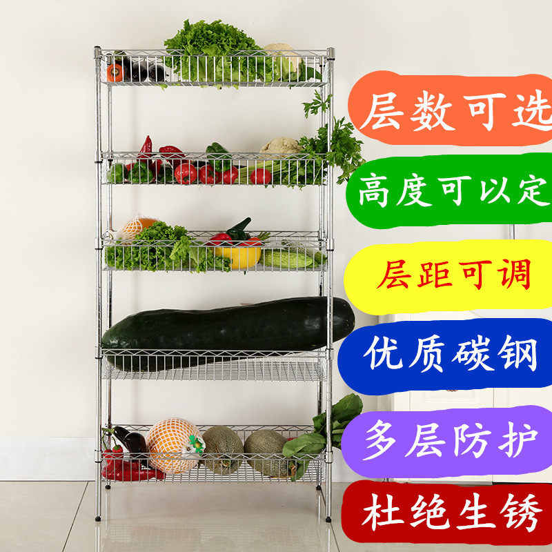 Kitchen shelf 4-layer stainless steel color shelf Fruit and vegetable basket storage basket shelf Floor-to-ceiling multi-layer pot rack