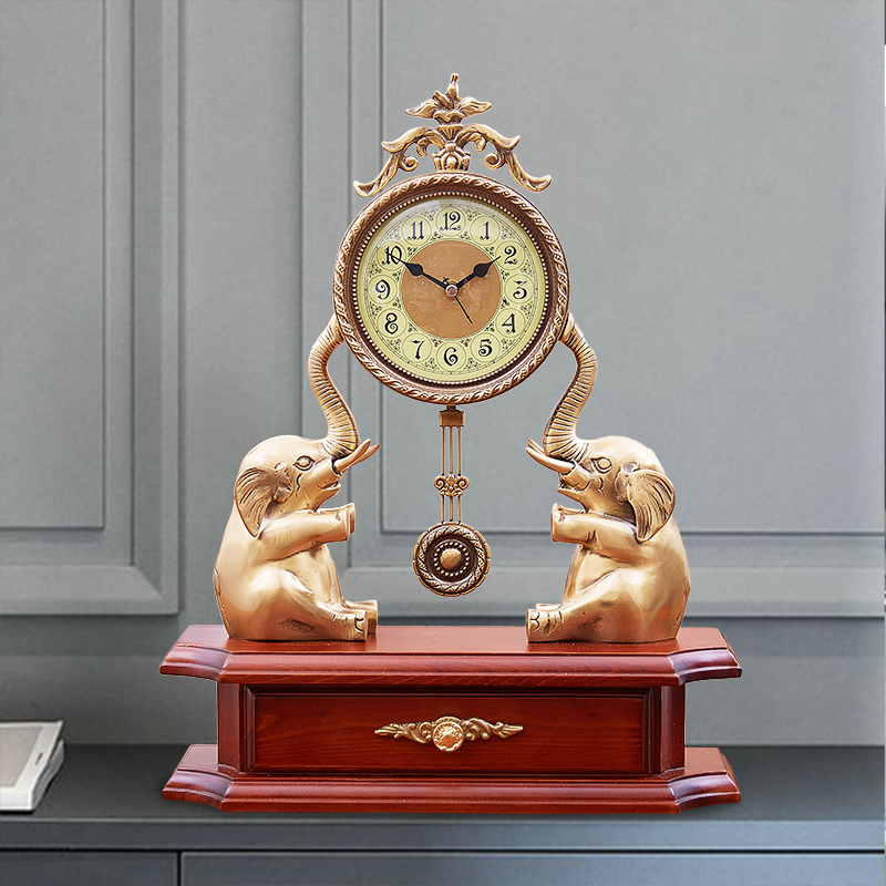 European style wood pure copper mute grandfather clock solid wood vintage living room American swing standing clock antique table clock clock table clock