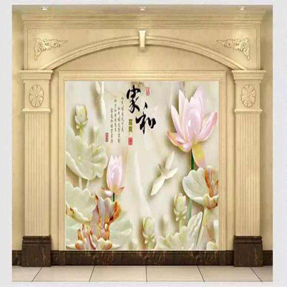 Living room through body marble Roman column drawing room background wall frame marble overall custom European-style background wall