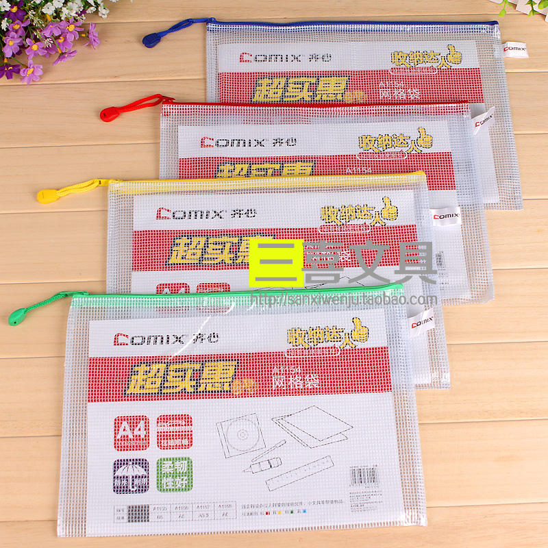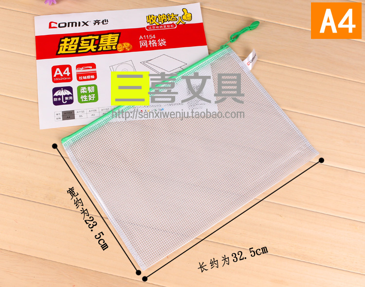 Qixin file bag A1154 PVC grid transparent zipper bag A4 storage bag office finishing information bag stationery