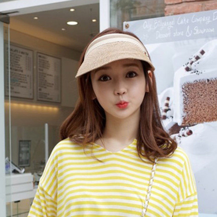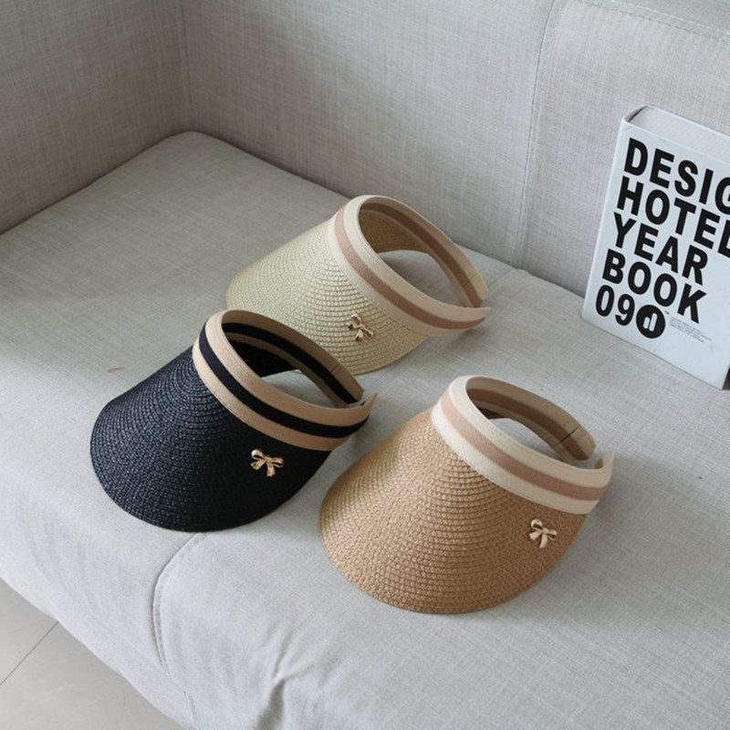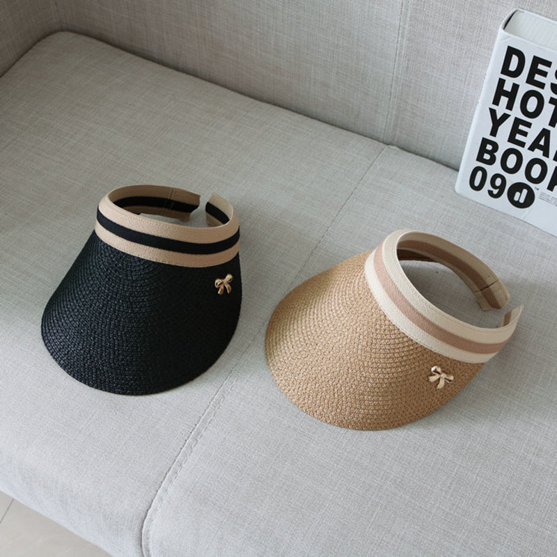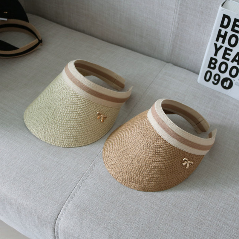 Korean version of butterfly knot straw hat sunbeds Empty Top Duck Tongue Cap Summer Sunscreen Sunscreen Hat Beach Hat Children