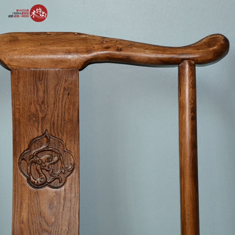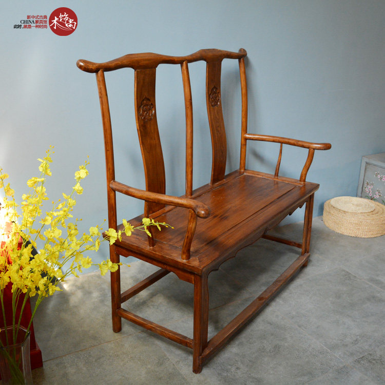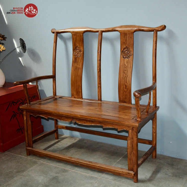 Old elm wood double tandem with high back official hat chair New Chinese vintage solid wood furniture retro to the old idylo style
