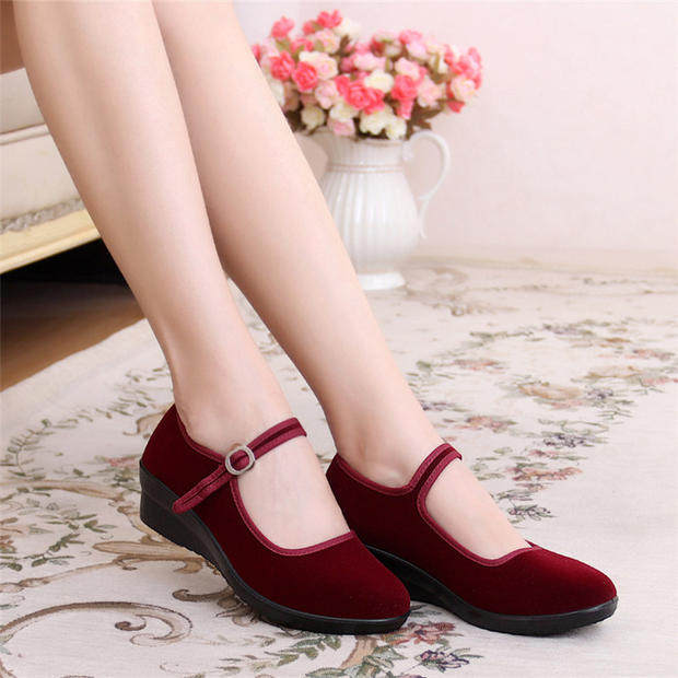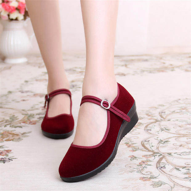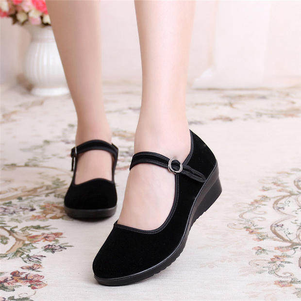 Old Beijing cloth shoes women's soft bottom black cloth shoes wedge heel thick bottom hotel work shoes sponge cake gift instrument single shoes mother dance shoes