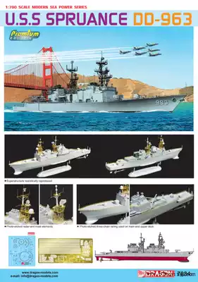 Veyron 7084 U.S. Navy DD-963 Spruance guided missile destroyer 1:700 hardcover pe