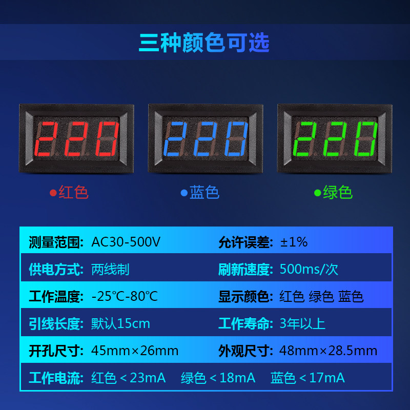 LED AC voltmeter digital display two-wire digital meter head home indicator display mains power AC220V 380V