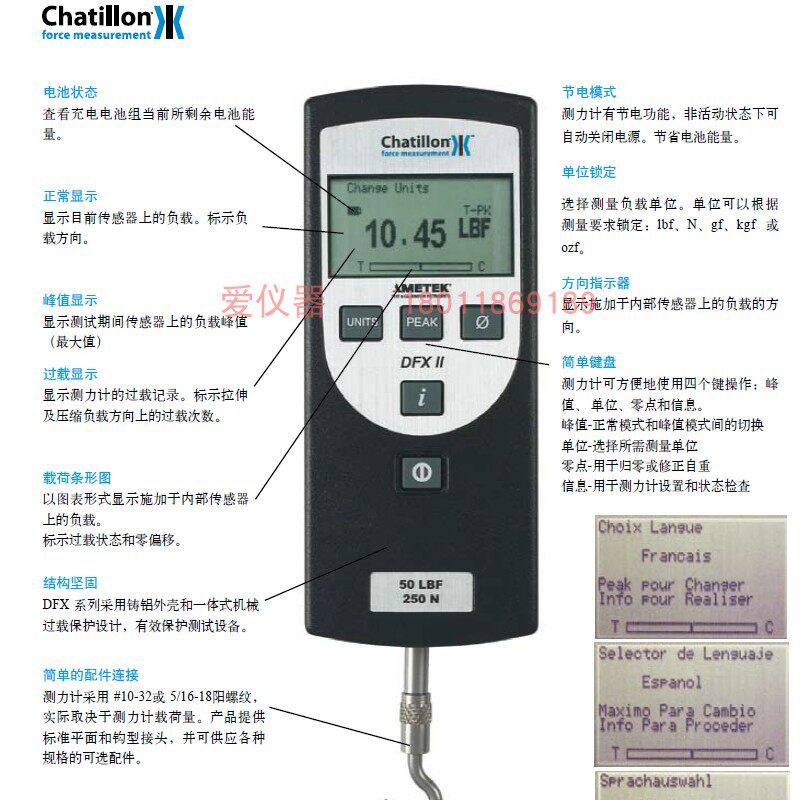 US Digital-digital dynamometer push-pull force accounting for DFX2-100 050 200LBF Chardylan CHATILLON