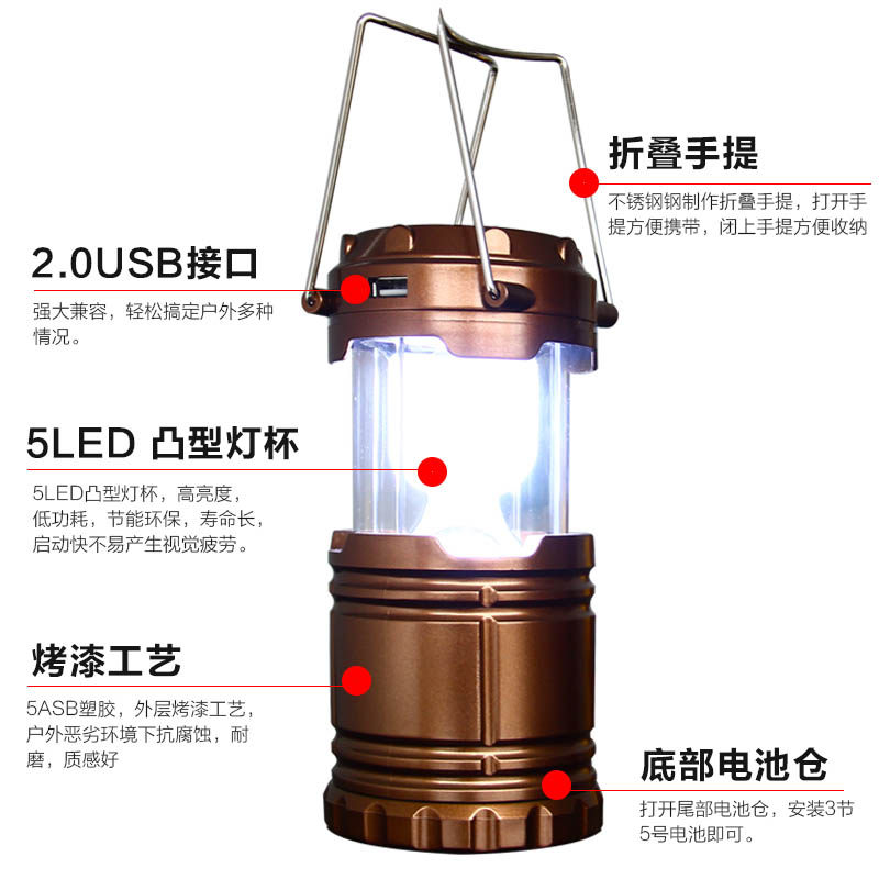 Outdoor tent camping lights, rechargeable LED solar lights, super bright, multi-functional camping horse lights, three power supplies