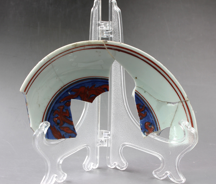 1749 Jiajing official kiln blue-and-white alum red dragon pan ancient porcelain specimen 8800