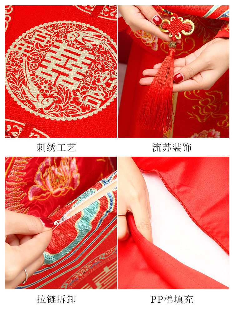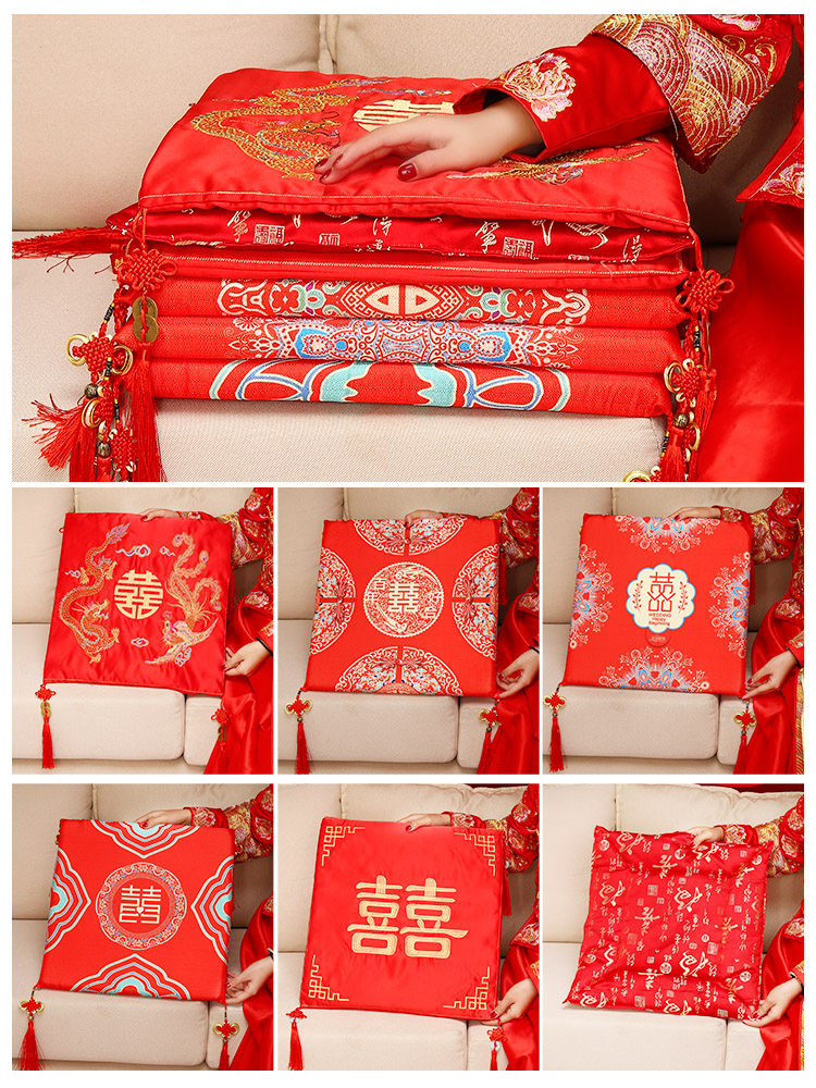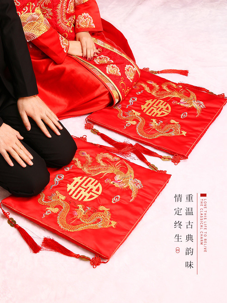 The newlyweds changed their mouth to respect the tea kneeling cushion and thickened the Chinese Han Tang wedding red happy word dragon phoenix sitting blessing mat