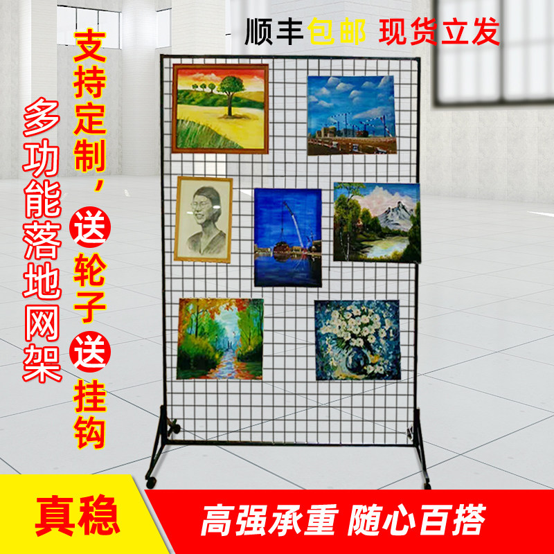 Vertical Mesh Sheet Floor Net Rack Mobile Double-sided Wire Mesh Grid Exhibition Kindergarten Work Goods Exhibition Rack Ornament Shelf