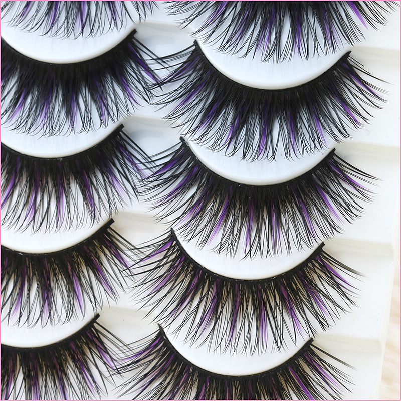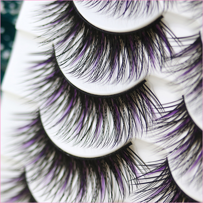 Japanese thick stage false eyelashes plus purple makeup eyelashes realistic handmade extension shoot two free glue