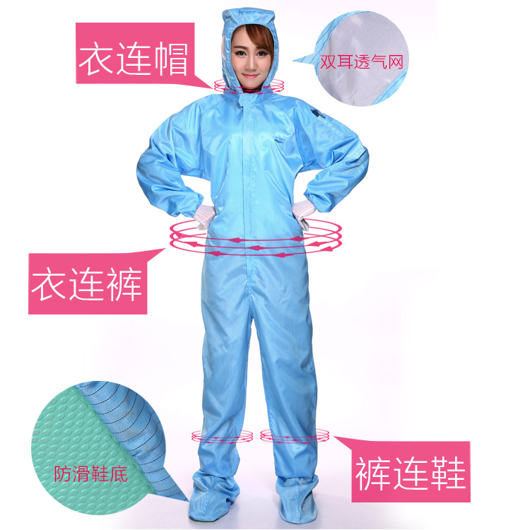 QCFH dust-free clothing conjoined with shoelaces hat whole body anti-static clothing spray paint sand therapy protection four-piece work clothes