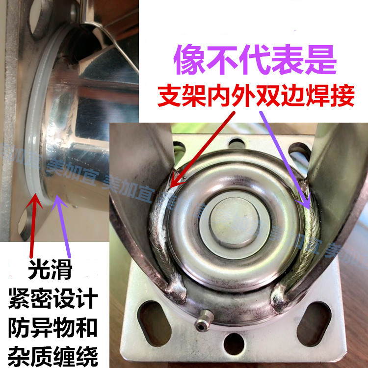 Universal heavy-duty stainless steel caster 304 bracket activity acid and alkali resistance 4 inches waterproof and rust-resistant food processing factory