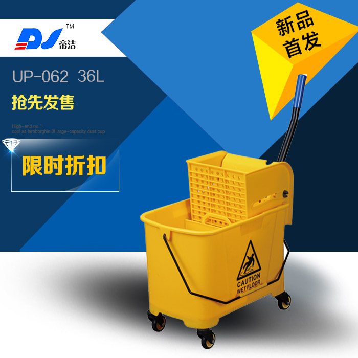 Squeeze water cart mop bucket hand push mop cart squeeze water cart 20L wash mop bucket hand press thickened mop press water cart